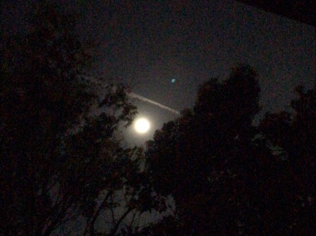(ちなみに、写真だと月はまん丸に見えますが、実際には左が欠けています。満月なら完璧だった(笑))